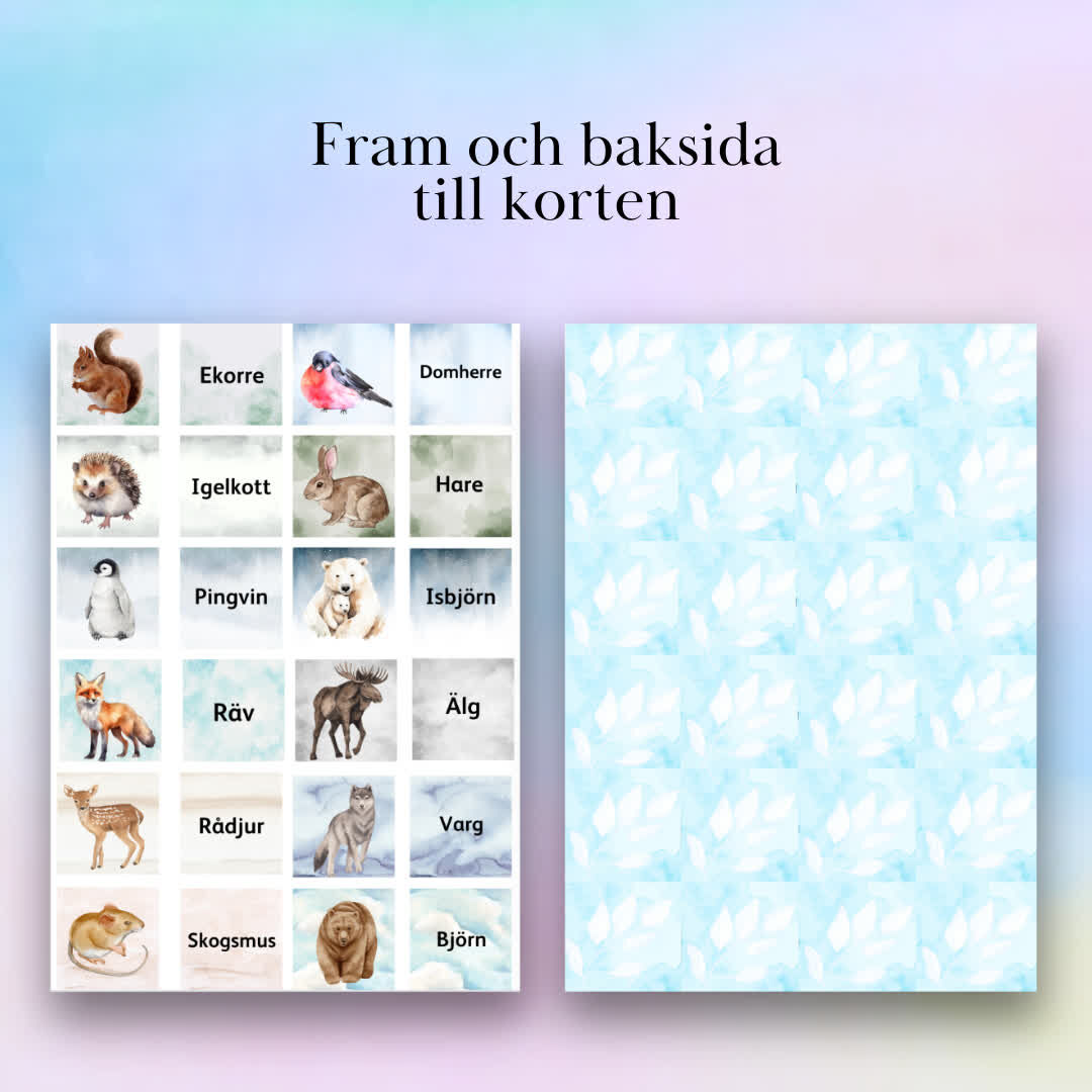 Utforska vinterdjursriket med vårt Vinterdjursmemory. Varje kortpar är inte bara en lekfull matchning; det är också en inbjudan till läsinlärning och språklig ljudning på ett roligt sätt. Genom att para ihop korten stärker spelaren inte bara sitt minne utan tränar också förmågan att koppla bilder med ljud och ord. Varje matchning blir en liten resa in i språkets fascinerande ljudvärld, vilket gör detta memoryspel till en engagerande och lärorik upplevelse.